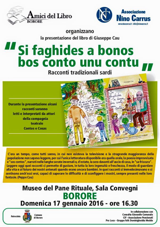 In collaborazione con gli Associazione Amici del Libro di Borore, l'Associazione Nino Carrus presenterà l'ultimo libro di Peppe Cau: 'Si faghides a bonos bos conto unu contu'.