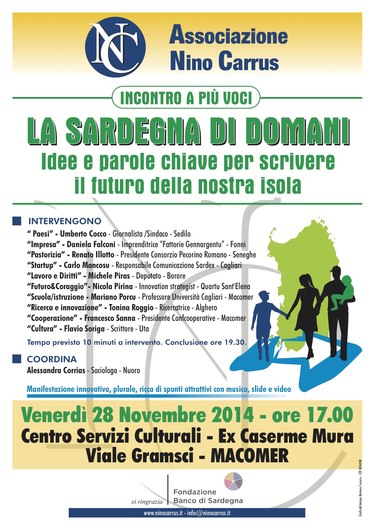 Nell'ambito delle attività per 2014, l'Associazione Nino Carrus organizza venerdì 28 novenmbre 2014 (ore 17 presso il Centro Servizi culturali di Macomer) un evento dal titolo "La Sardegna di domani: idee e parole chiave per scrivere il futuro della nostra isola".