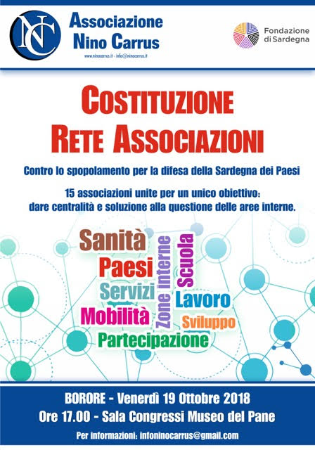 Per questi motivi, l'Associazione Nino Carrus, in collaborazione con altre quindici associazioni rappresentative dell'intero territorio regionale, organizza un primo incontro, a Borore nella sala consiliare del Comune, al centro della Sardegna, per esaminare la fattibilità della costituzione della Rete associativa. Un incontro preliminare, aperto, sicuramente non esaustivo per la definizione di tutti i problemi legati all'importanza e alla complessità dell'iniziativa.